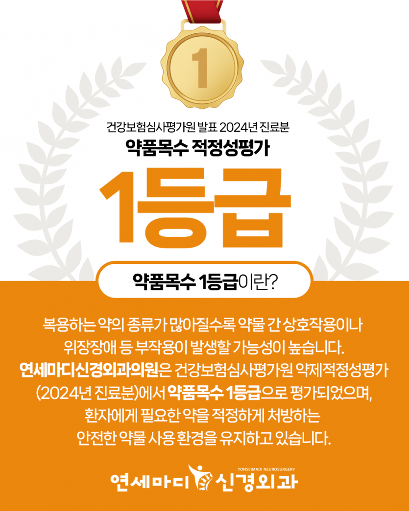 연세마디신경외과의원이 약품목수 1등급으로 평가된 바 있습니다.
