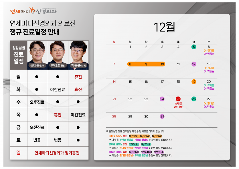 [12월 원장님별 진료일정 안내 - 대구현풍 연세마디신경외과의원 의사일정]