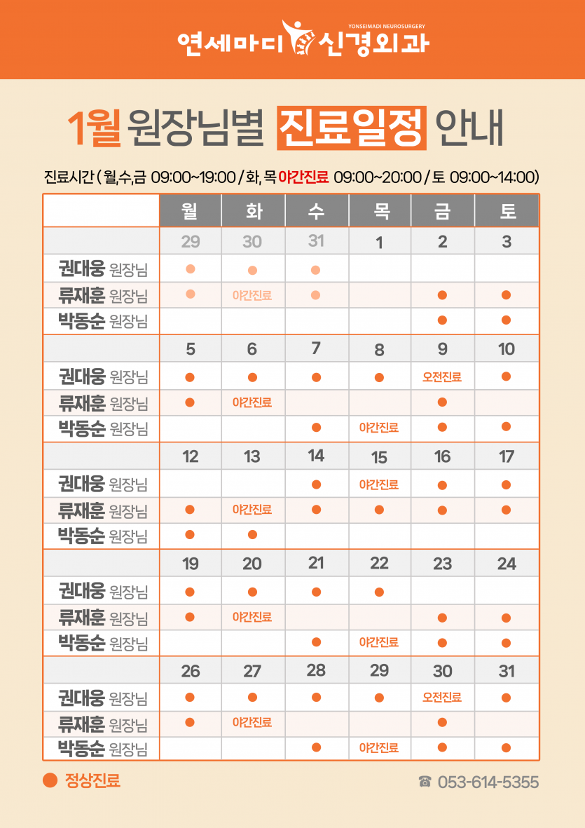 1월 원장님별 진료일정 안내 - 대구현풍 연세마디신경외과 의사일정